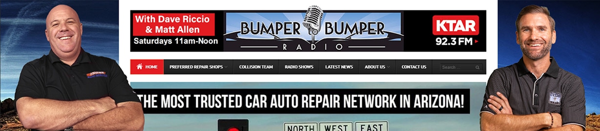 While KTAR always had a “Car Show” on Saturday mornings, the former show became unviable as a “do it yourselfer” show, which wasn’t broad enough to the everyday automotive consumer. Matt Allen and Dave Riccio’s new concept of Bumper to Bumper Radio, their “brain child”, was to educate consumers in a fun and personable way. It was also created to relieve the anxiety when it came time to deal with auto repair and maintenance. They did this by encouraging listeners to be engaged with the repair process, create a relationship with a trusted shop and be comfortable enough to ask questions in order to understand the repair they are purchasing. So together Dave Riccio, Matt Allen and Michael Henry went to work to develop what ended up to be Bumper to Bumper Radio, every Saturday at 11:00 on KTAR NEWS, 92.3 in Phoenix, Arizona.